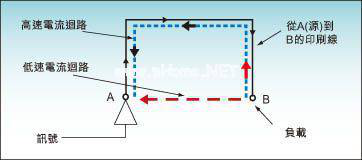 在任何高速數(shù)字電路設(shè)計中,處理噪音和電磁干擾(EMI)都是必然的挑戰(zhàn)。處理音視訊和通訊訊號的數(shù)字訊號處理(DSP)系統(tǒng)特別容易遭受這些干擾,設(shè)計時應(yīng)該及早理清潛在的噪音和干擾源,并及早采取措施將這些干擾降到最小。良好的規(guī)劃將減少除錯階段中的大量時間和工作反復(fù),可節(jié)省整體設(shè)計時間和成本。如今,最快的DSP的內(nèi)部頻率速率高達數(shù)GHz,而發(fā)射和接收訊號的頻率高達數(shù)百 MHz。這些高速開關(guān)訊號將會產(chǎn)生大量的噪音和干擾,將影響系統(tǒng)性能并產(chǎn)生電平很高的EMI。而DSP系統(tǒng)也變得更加復(fù)雜,如具有音視訊接口、LCD和無線通訊功能,以太網(wǎng)絡(luò)和USB控制器、電源、振蕩器、驅(qū)動控制以及其它各種電路,它們都將產(chǎn)生噪音,也都會受到相鄰組件的影響。音視訊系統(tǒng)中特別容易產(chǎn)生這些問題,因為噪音會引起微妙的性能衰減,但這幾乎不會顯露在離散的數(shù)據(jù)之中。重點是要從設(shè)計開始就著手解決噪音和干擾問題。許多設(shè)計第一次都沒有通過聯(lián)邦通訊委員會(FCC)的電磁兼容測試。如果在早期設(shè)計中,在低噪音和低干擾設(shè)計方法上花費一些時間,就會減少后續(xù)階段的重新設(shè)計成本和產(chǎn)品上市時間的延遲。因此,從設(shè)計一開始,開發(fā)工程師就應(yīng)該著眼于:1. 選用在動態(tài)負載條件下具有低開關(guān)噪音的電源;2. 將高速訊號線間的串?dāng)_降到最??;3. 高頻和低頻退耦;4. 具有最小傳輸線效應(yīng)的優(yōu)良訊號完整性; 如果實現(xiàn)了這些目標(biāo),開發(fā)工程師就能有效避免噪音和EMI方面的缺陷。噪音的影響及控制 對于高速DSP而言,降低噪音是最重要的設(shè)計準(zhǔn)則之一。來自任何噪聲源的過大噪音,都會導(dǎo)致隨機邏輯和鎖相環(huán)(PLL)失效,降低可靠性。還會導(dǎo)致影響FCC認證測試的輻射干擾。此外,除錯一個噪音很大的系統(tǒng)是極端困難的;因此,要消除噪音──若能徹底消除的話──將要求在電路板設(shè)計中花費大量心血。 在音視訊系統(tǒng)中,即便是比較小的干擾,也會對最終產(chǎn)品的性能產(chǎn)生顯著影響。例如,音訊擷取和播放系統(tǒng)中,性能將取決于所用音訊編譯碼的質(zhì)量、電源噪音、PCB布線質(zhì)量、相鄰電路間的串?dāng)_大小等。而且,采樣頻率的穩(wěn)定度要求也非常高,以避免出現(xiàn)不希望的雜音,如在播放和擷取時的‘砰砰’聲和‘喀嚓’聲。 在視訊系統(tǒng)中,主要的挑戰(zhàn)是消除色彩失真、60Hz‘嗡嗡’聲以及音訊敲擊聲。這些對高質(zhì)量視訊的系統(tǒng)都是有害的,例如安全監(jiān)控方面的應(yīng)用。實際上,上述這些問題通常都與視訊電路板的設(shè)計不良有關(guān),包括:電源噪音傳到視訊的DAC輸出上;音訊播放引起電源瞬變;音訊訊號耦合到高阻抗的視訊電路訊號在線。 這些典型的視訊問題源包括:同步和畫素頻率的過沖和欠沖;影響色彩的編譯碼和畫素頻率抖動;缺少端接電阻的影像失真;音視訊隔離較差引起的閃爍。 音視訊應(yīng)用容易產(chǎn)生的噪音干擾問題,對于所有要求具有很低誤碼率的通訊系統(tǒng)來說也是常見的。在通訊系統(tǒng)中,輻射不僅僅產(chǎn)生EMI問題,還會阻塞其它的通訊訊息信道,引起偽訊息信道檢測。采用適當(dāng)?shù)碾娐钒逶O(shè)計、屏蔽技術(shù)以及RF和混合的模擬/數(shù)字訊號的隔離等技術(shù),就可以解決這些挑戰(zhàn)。 在高速DSP系統(tǒng)中有許多潛在的開關(guān)噪聲源,包括:訊號線間的串?dāng)_;傳輸線效應(yīng)引起的反射;退耦電容不合適引起的電壓降低;高電感的電源線,振蕩器和鎖相環(huán)電路;開關(guān)電源;線形調(diào)整器不穩(wěn)定性所引起的大容性負載;磁盤驅(qū)動器。 這些問題由電耦合和磁耦合共同產(chǎn)生。電耦合的產(chǎn)生是由于相鄰訊號和電路的寄生電容和互感所引起,而磁耦合的形成是由于相鄰的訊號線形成輻射天線所導(dǎo)致。如果輻射干擾足夠強的話,將會導(dǎo)致能夠摧毀其它系統(tǒng)的EMI問題。 當(dāng)高速DSP系統(tǒng)中的噪音無法根本消除時,則應(yīng)該將其減到最小。電子零組件內(nèi)部都有噪音,故仔細選擇組件特性,并選用適當(dāng)?shù)慕M件至關(guān)重要。除了正確選擇組件外,還有兩種通用的技術(shù),即PCB布線和回路退耦可協(xié)助控制系統(tǒng)噪音。一個優(yōu)秀的PCB布線將降低噪音通道產(chǎn)生的可能性。另外,還減少了能夠傳播到印刷線和電流回路上的輻射,退耦可避免相鄰電路產(chǎn)生的噪音影響。最好的方法是從源頭上濾除噪音,不過也可以使相鄰的電路對噪音不感應(yīng)或消除噪音的耦合通道。以下將討論幾種可解決由系統(tǒng)噪音和EMI引發(fā)之常見問題的技術(shù)。保持最短的電流回路 低速訊號電流沿阻抗最小,即最短的路徑返回源端。而高速訊號則是沿電感最小的路徑返回:這樣的最小的回路面積位于訊號線下方,如圖1所示。