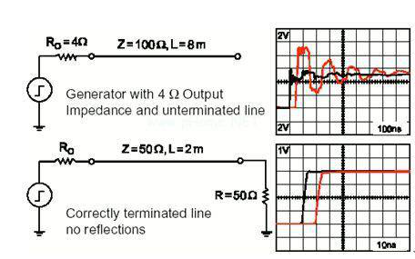 圖6:解決音視訊串?dāng)_。 與串?dāng)_相關(guān)的是傳輸線效應(yīng),這種效應(yīng)在高速印刷線變成產(chǎn)生輻射干擾的發(fā)射器時產(chǎn)生。通常,當(dāng)訊號的上升時間小于傳播延遲的2倍時,印刷線才發(fā)射訊號。這暗示為了減少傳播延遲,印刷線的長度應(yīng)盡可能短。另一個是合理的訊號端接將減慢訊號的上升時間,將反射引起的過沖和欠沖減到最小。圖7顯示了如何利用平行端接來校正電平并將傳輸線效應(yīng)減到最小。